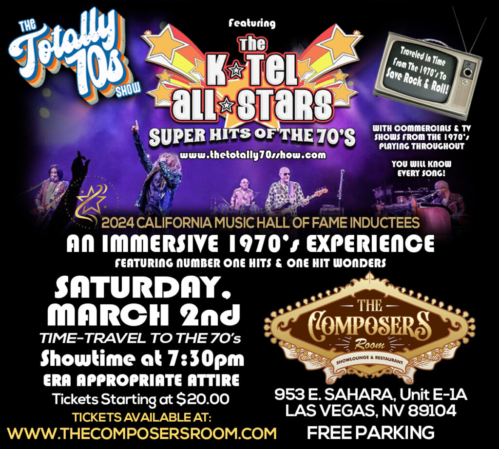 The K-Tel All Stars are a far out representation of a concert straight out of the 70s. Their show consists of Number-One Hits, One-Hit Wonders, AM Radio Gold, and Iconic Rock Hits from 1970 to 1979. Here’s the skinny; you’ll know every song!